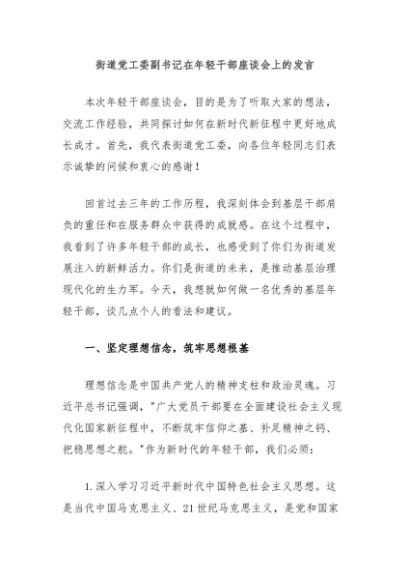 / 【七哥公文】2024年:街道党工委副书记在年轻干部座谈会上的发言+更多免费公文+VX:QiGeGongWen2024