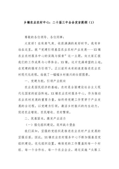 / 【七哥公文】2024年:乡镇农业农村中心:二十届三中全会发言提纲(1)+更多免费公文+VX:QiGeGongWen2024