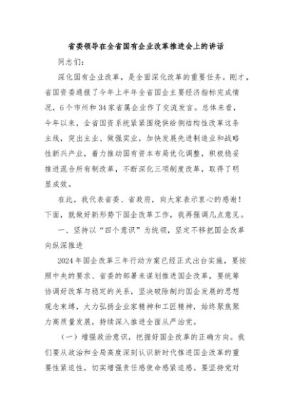 / 【七哥公文】2024年:省委领导在全省国有企业改革推进会上的讲话+更多免费公文+VX:QiGeGongWen2024