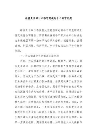 【七哥公文】2024年:经济责任审计中不可忽视的十个细节问题+更多免费公文+VX:QiGeGongWen2024
