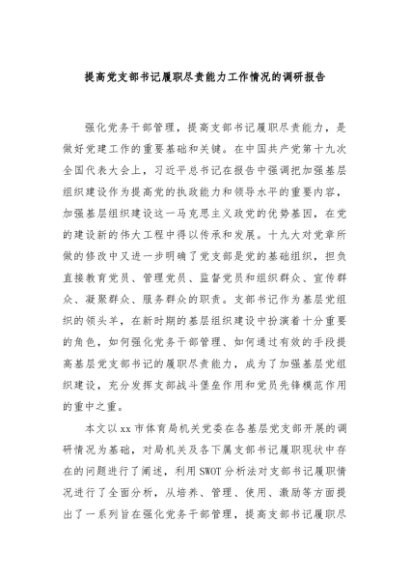 / 【七哥公文】2024年:提高党支部书记履职尽责能力工作情况的调研报告+更多免费公文+VX:QiGeGongWen2024