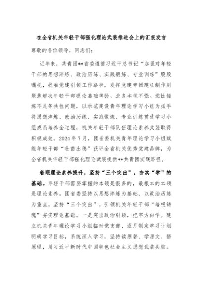 / 【七哥公文】2024年:在全省机关年轻干部强化理论武装推进会上的汇报发言+更多免费公文+VX:QiGeGongWen2024