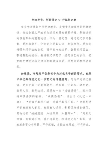 / 【七哥公文】2024年:交流发言:怀敬畏之心 行规矩之事+更多免费公文+VX:QiGeGongWen2024