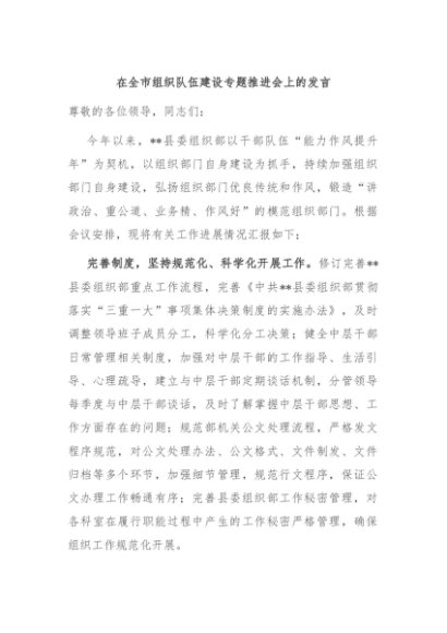 / 【七哥公文】2024年:在全市组织队伍建设专题推进会上的发言+更多免费公文+VX:QiGeGongWen2024
