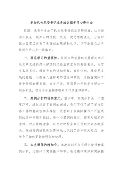 【七哥公文】2024年:参加机关纪委书记业务培训班学习心得体会+更多免费公文+VX:QiGeGongWen2024