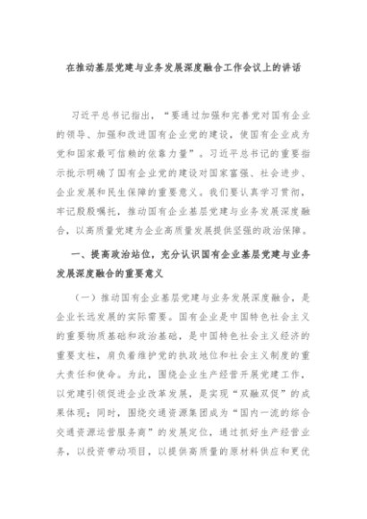 / 【七哥公文】2024年:在推动基层党建与业务发展深度融合工作会议上的讲话+更多免费公文+VX:QiGeGongWen2024