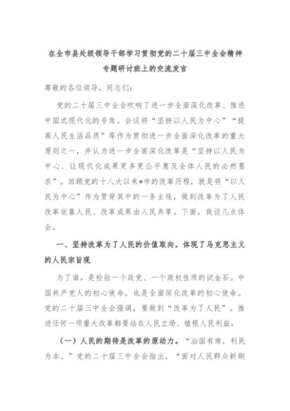 【七哥公文】2024年:在全市县处级领导干部学习贯彻党的二十届三中全会精神专题研讨班上的交流发言+更多免费公文+VX:QiGeGongWen2024