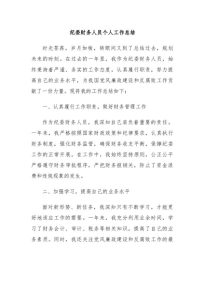 / 【七哥公文】2024年:纪委财务人员个人工作总结+更多免费公文+VX:QiGeGongWen2024