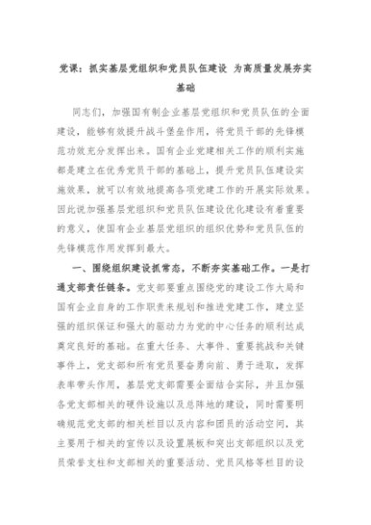 【七哥公文】2024年:党课:抓实基层党组织和党员队伍建设 为高质量发展夯实基础+更多免费公文+VX:QiGeGongWen2024