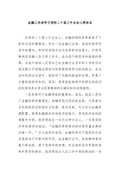 / 【七哥公文】2024年:金融工作者学习党的二十届三中全会心得体会+更多免费公文+VX:QiGeGongWen2024