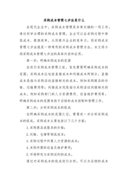 / 【七哥公文】2024年:采购成本管理七步法是什么+更多免费公文+VX:QiGeGongWen2024
