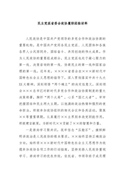 / 【七哥公文】2024年:民主党派省委会政协履职经验材料+更多免费公文+VX:QiGeGongWen2024
