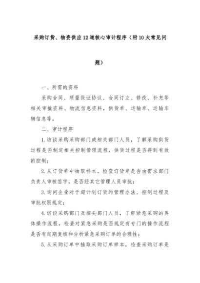【七哥公文】2024年:采购订货、物资供应12道核心审计程序(附10大常见问题)+更多免费公文+VX:QiGeGongWen2024