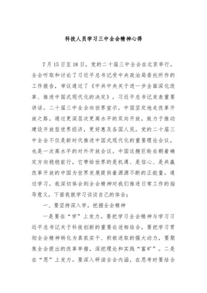 / 【七哥公文】2024年:科技人员学习三中全会精神心得+更多免费公文+VX:QiGeGongWen2024