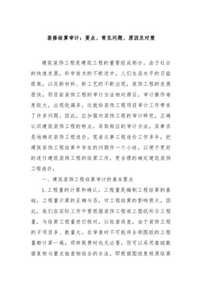 【七哥公文】2024年:装修结算审计:要点、常见问题、原因及对策+更多免费公文+VX:QiGeGongWen2024