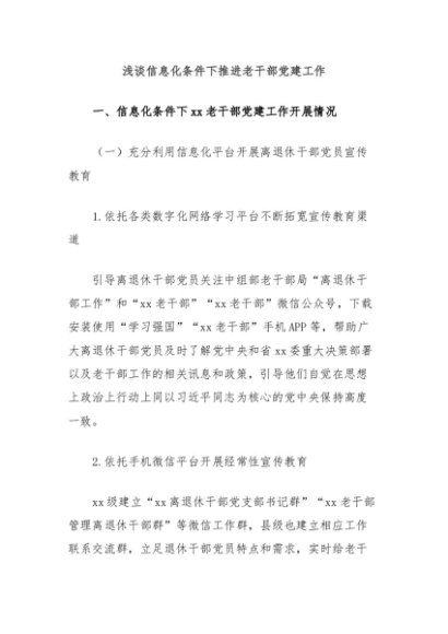 / 【七哥公文】2024年:浅谈信息化条件下推进老干部党建工作+更多免费公文+VX:QiGeGongWen2024