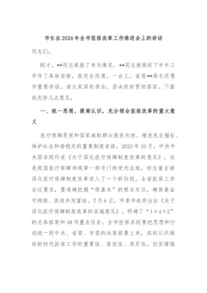 / 【七哥公文】2024年:市长在2024年全市医保改革工作推进会上的讲话+更多免费公文+VX:QiGeGongWen2024