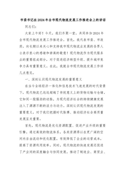 【七哥公文】2024年:市委书记在2024年全市现代物流发展工作推进会上的讲话+更多免费公文+VX:QiGeGongWen2024