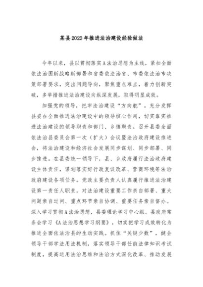 / 【七哥公文】2024年:某县2023年推进法治建设经验做法+更多免费公文+VX:QiGeGongWen2024