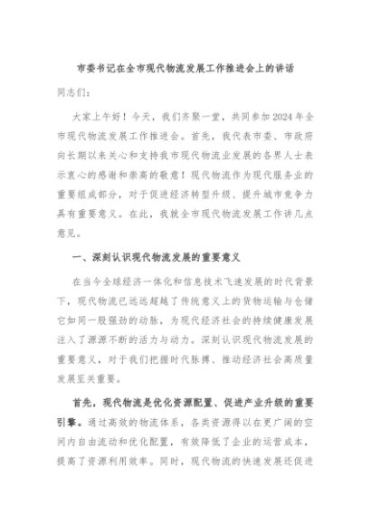 / 【七哥公文】2024年:市委书记在全市现代物流发展工作推进会上的讲话+更多免费公文+VX:QiGeGongWen2024