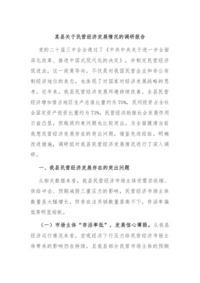 / 【七哥公文】2024年:某县关于民营经济发展情况的调研报告+更多免费公文+VX:QiGeGongWen2024
