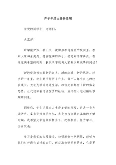 / 【七哥公文】2024年:开学年级主任讲话稿+更多免费公文+VX:QiGeGongWen2024