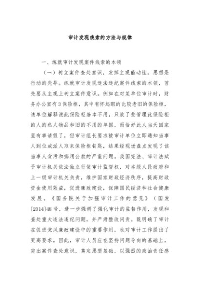 / 【七哥公文】2024年:审计发现线索的方法与规律+更多免费公文+VX:QiGeGongWen2024