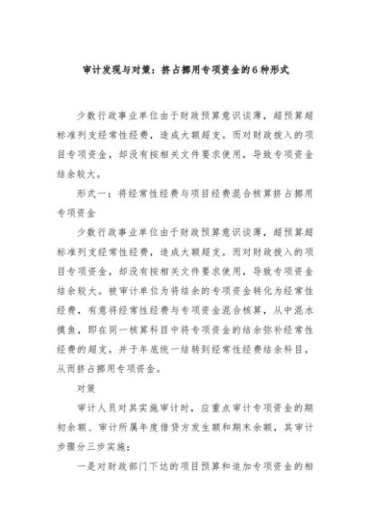 / 【七哥公文】2024年:审计发现与对策:挤占挪用专项资金的6种形式+更多免费公文+VX:QiGeGongWen2024