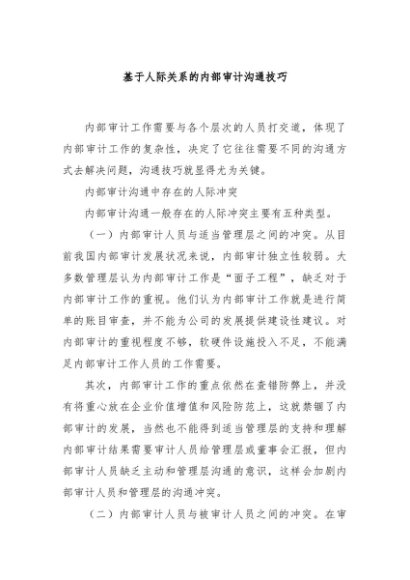 【七哥公文】2024年:基于人际关系的内部审计沟通技巧+更多免费公文+VX:QiGeGongWen2024
