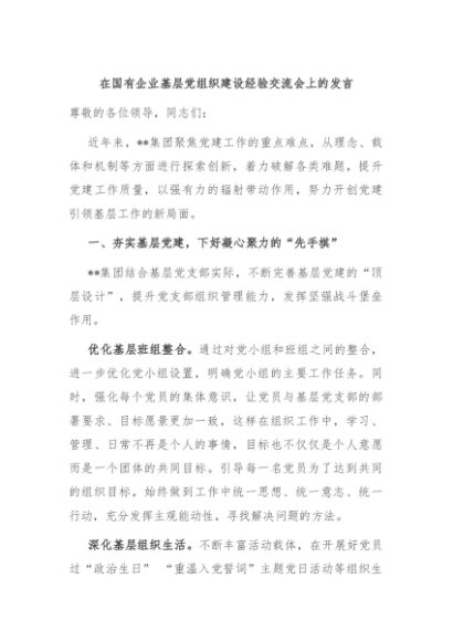 / 【七哥公文】2024年:在国有企业基层党组织建设经验交流会上的发言+更多免费公文+VX:QiGeGongWen2024