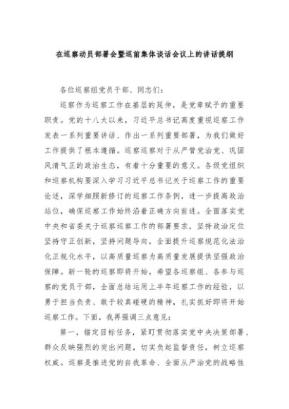 / 【七哥公文】2024年:在巡察动员部署会暨巡前集体谈话会议上的讲话提纲+更多免费公文+VX:QiGeGongWen2024