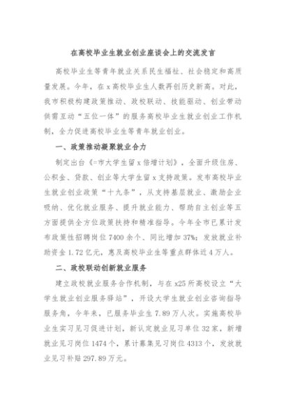 / 【七哥公文】2024年:在高校毕业生就业创业座谈会上的交流发言+更多免费公文+VX:QiGeGongWen2024