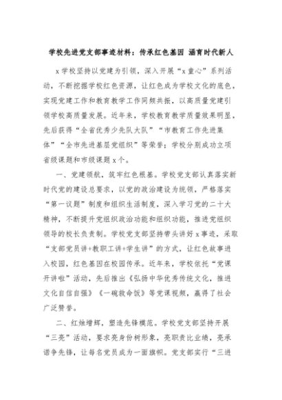 【七哥公文】2024年:学校先进党支部事迹材料:传承红色基因 涵育时代新人+更多免费公文+VX:QiGeGongWen2024