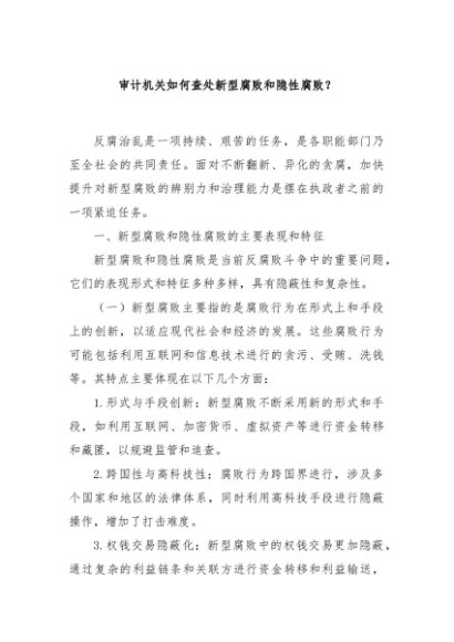 / 【七哥公文】2024年:审计机关如何查处新型腐败和隐性腐败?+更多免费公文+VX:QiGeGongWen2024