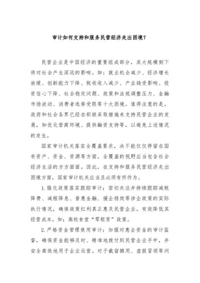 【七哥公文】2024年:审计如何支持和服务民营经济走出困境?+更多免费公文+VX:QiGeGongWen2024