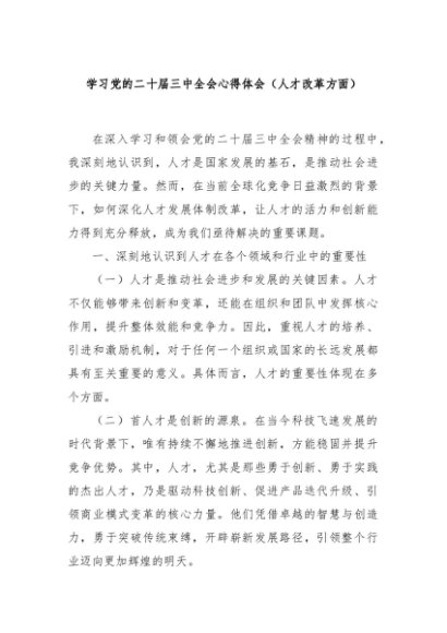 【七哥公文】2024年:学习党的二十届三中全会心得体会(人才改革方面)+更多免费公文+VX:QiGeGongWen2024