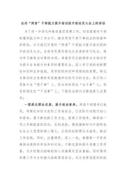 【七哥公文】2024年:在村“两委”干部能力提升培训班开班动员大会上的讲话+更多免费公文+VX:QiGeGongWen2024