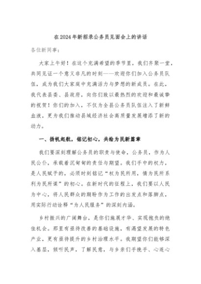 / 【七哥公文】2024年:在2024年新招录公务员见面会上的讲话+更多免费公文+VX:QiGeGongWen2024