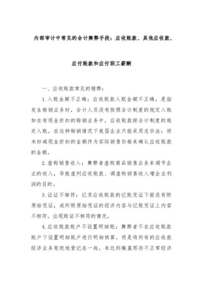 【七哥公文】2024年:内部审计中常见的会计舞弊手段:应收账款、其他应收款、应付账款和应付职工薪酬+更多免费公文+VX:QiGeGongWen2024