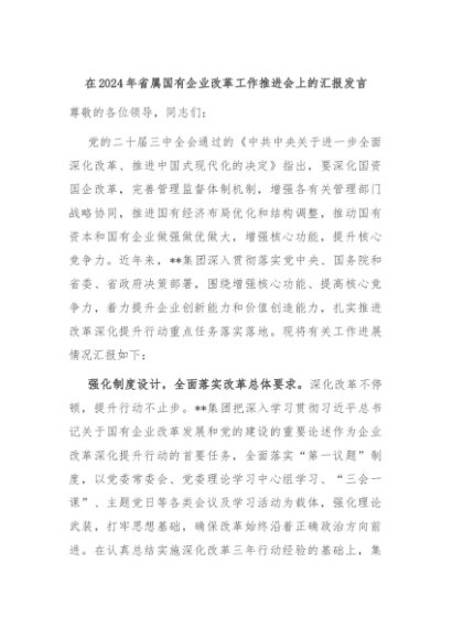 【七哥公文】2024年:在2024年省属国有企业改革工作推进会上的汇报发言+更多免费公文+VX:QiGeGongWen2024