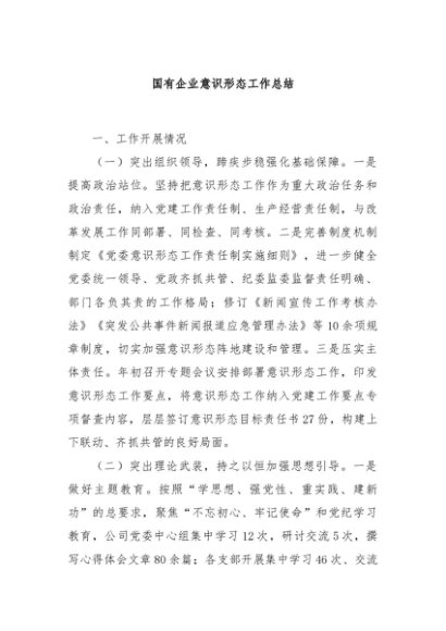 / 【七哥公文】2024年:国有企业意识形态工作总结+更多免费公文+VX:QiGeGongWen2024