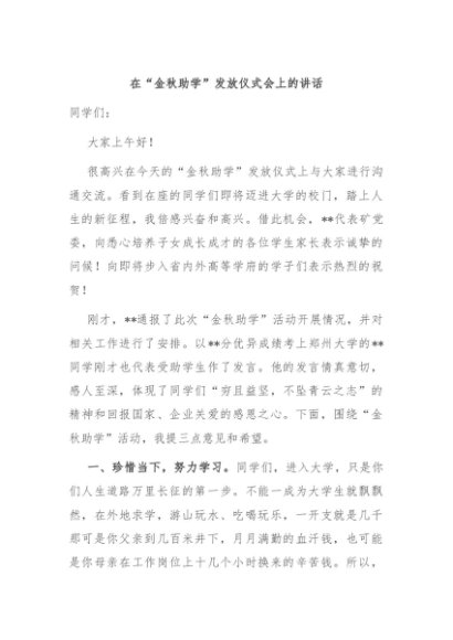 / 【七哥公文】2024年:在“金秋助学”发放仪式会上的讲话+更多免费公文+VX:QiGeGongWen2024