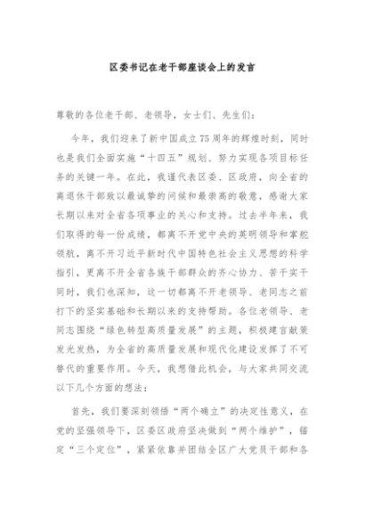 / 【七哥公文】2024年:区委书记在老干部座谈会上的发言+更多免费公文+VX:QiGeGongWen2024