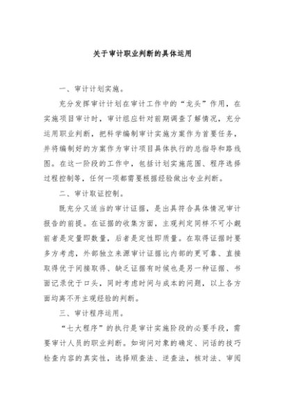 【七哥公文】2024年:关于审计职业判断的具体运用+更多免费公文+VX:QiGeGongWen2024