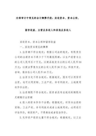 【七哥公文】2024年:内部审计中常见的会计舞弊手段:实收资本、资本公积、留存收益、主营业务收入和其他业务收入+更多免费公文+VX:QiGeGongWen2024