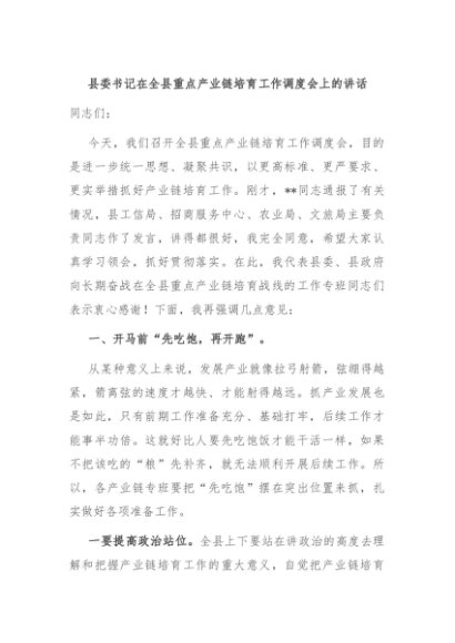 / 【七哥公文】2024年:县委书记在全县重点产业链培育工作调度会上的讲话+更多免费公文+VX:QiGeGongWen2024