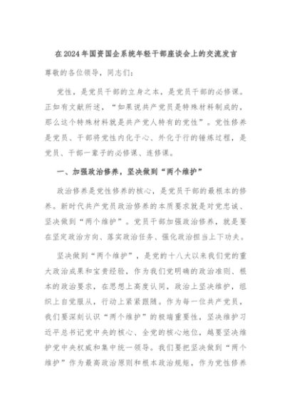 【七哥公文】2024年:在2024年国资国企系统年轻干部座谈会上的交流发言+更多免费公文+VX:QiGeGongWen2024