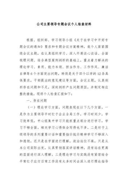 / 【七哥公文】2024年:公司主要领导专题会议个人检查材料+更多免费公文+VX:QiGeGongWen2024