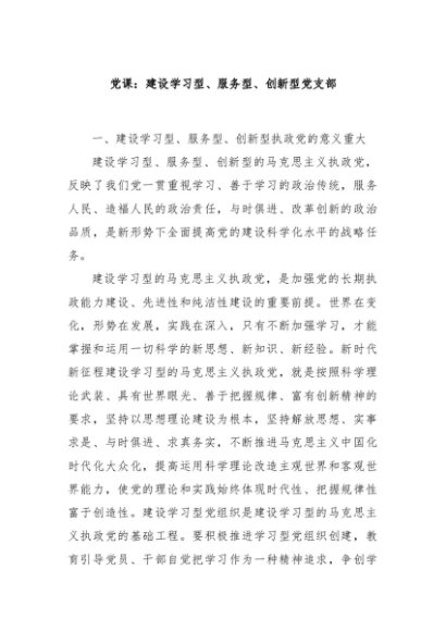 / 【七哥公文】2024年:党课:建设学习型、服务型、创新型党支部+更多免费公文+VX:QiGeGongWen2024