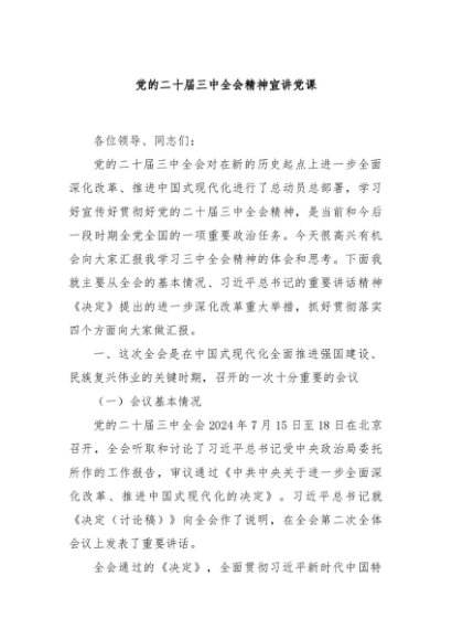 / 【七哥公文】2024年:党的二十届三中全会精神宣讲党课+更多免费公文+VX:QiGeGongWen2024